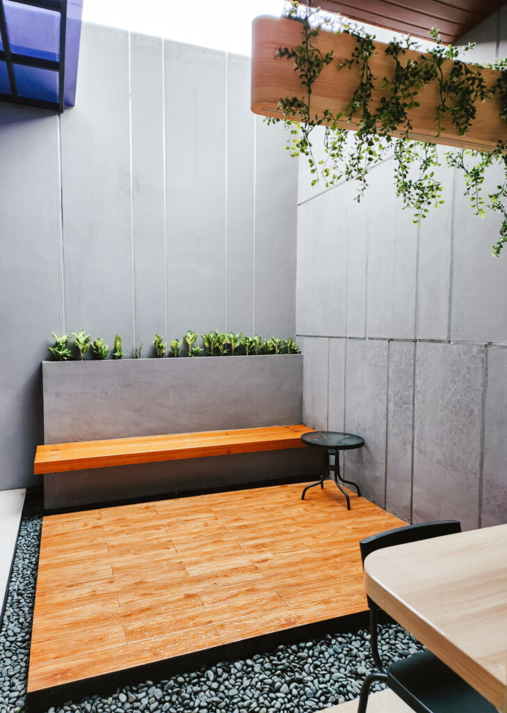 Renovasi menyeluruh pada area belakang, kamar mandi, dan lantai atas, termasuk penggantian kusen kayu, pemasangan pintu baru, serta pembuatan kanopi untuk area outdoor.